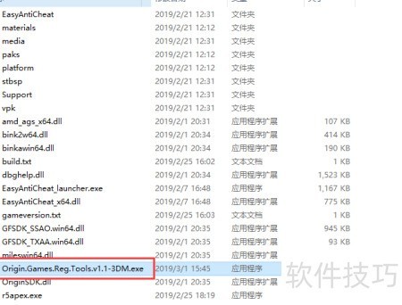 5、 将下载好的Origin.Games.Reg.Tools.v1.1-3DM.exe工具文件复制到Apex游戏的安装目录中即可。