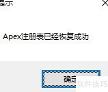 7、 约等待一分钟,将提示Apex注册表恢复成功。