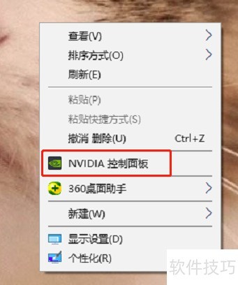 1、 右键点击电脑桌面,从菜单中选择NVIDIA控制面板即可打开设置界面。