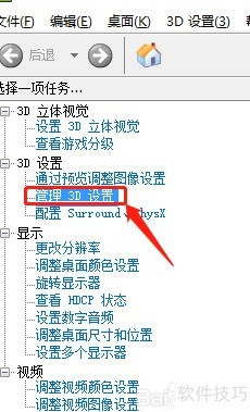 2、 打开NVIDIA控制面板后,于左侧菜单依次点击3D设置与管理3D设置。