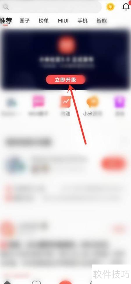 2、 打开小米社区首页,点击顶部的立即升级按钮。