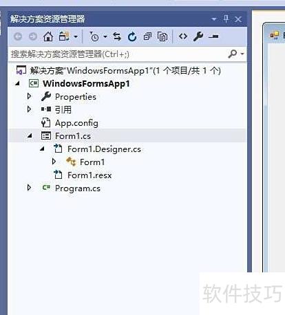 4、 打开Form1.cs文件,右侧显示可编辑界面。