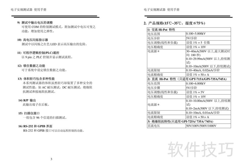 、 本文是固纬GPI-745A/GPI-735A安规测试仪中文使用手册,详细讲解仪器的操作步骤与常见问题处理方法,帮助用户正确高效地使用设备。