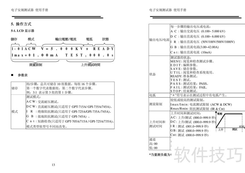本文为固纬GPI-745A/GPI-735A安规测试仪的中文操作指南,详细说明仪器的使用步骤与常见问题处理方法,帮助用户正确操作设备并解决使用过程中可能遇到的故障。