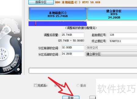 6、 点击开始后,所创建的分区将采用NTFS格式。