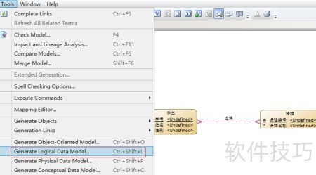 6、 打开CDM模型,通过工具菜单生成LDM模型。
