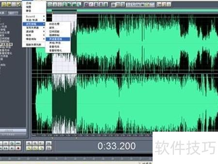 7、 在菜单栏选择效果→波形振幅→声道重混缩,打开相应设置窗口。