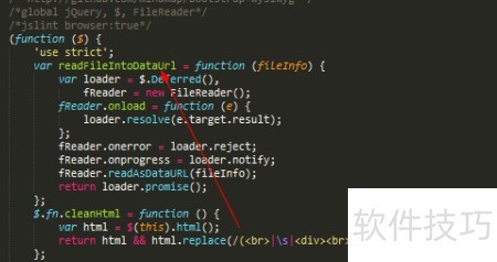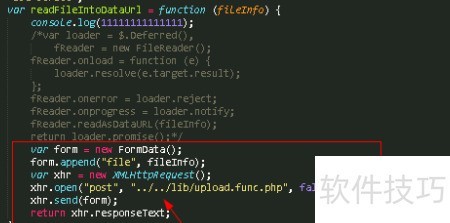 6、 关键在于其外部的readFileIntoDataUrl(fileInfo)方法,该方法位于文件顶部,易于查找。正是在此处将图片数据转换为Base64编码格式,实现了文件内容的读取与编码处理,是整个流程中实现图片转码的核心环节。