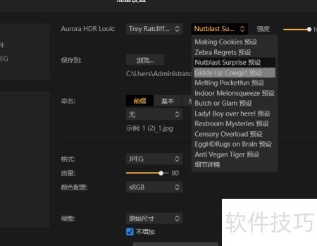 11、 设置保存路径后,选择Aurora HDR中的预设风格,根据个人喜好调整效果。确认后点击右下角的处理按钮,即可批量完成照片渲染。如需进一步优化,可展开下方高级选项,对图像的锐化程度和色差等细节进行精细调节,提升整体画质表现。