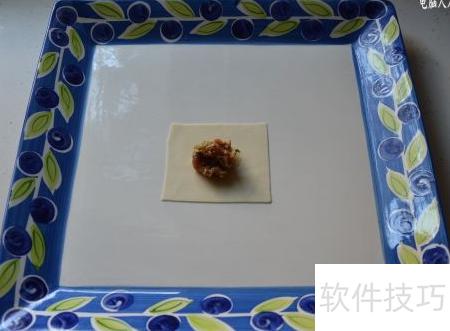22、 取适量馅料置于馄饨皮中央,避免过多导致破皮漏馅。