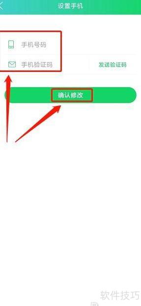 4、 打开手机设置页面,填写手机号与验证码后,点击确认修改按钮完成操作。