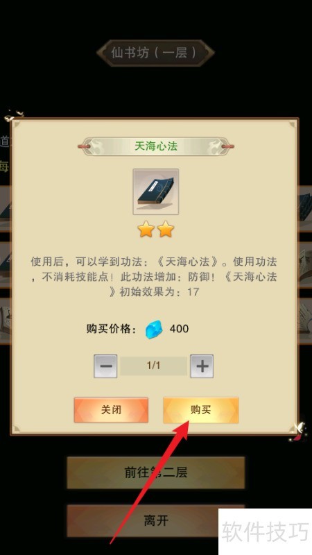 6、 踏入仙书坊一楼,选取天海心法。