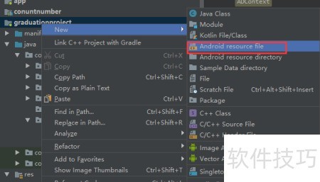 2、 接着选择Android资源文件