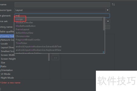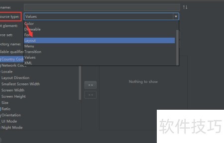 3、 选择资源类型为布局。