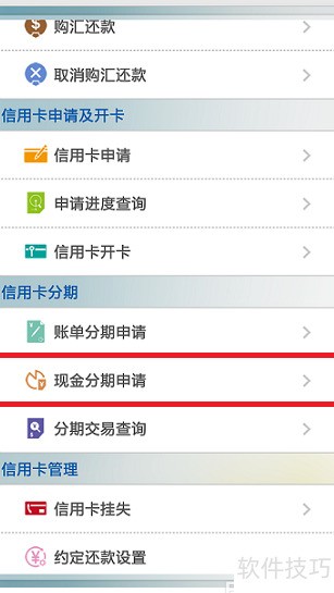 2、 进入信用卡分期,选择现金分期进行申请。