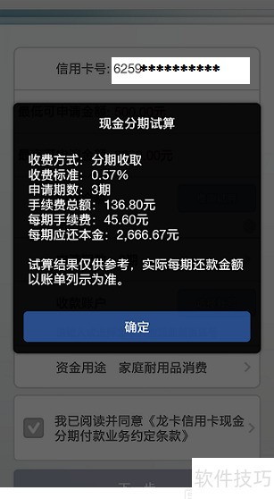 5、 点击费率试算可预览各期还款金额及费率详情。