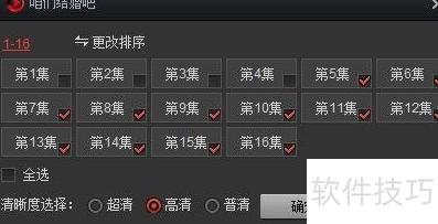 7、 点击下载后,会显示影片的集数列表,勾选所需集数,再确认下载即可。