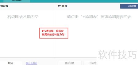 4、 点击页面下方的+ETL表按钮,即可进入ETL处理界面,所示。