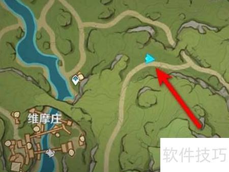 1、 进入原神地图,传送至维摩庄右上方的小路即可。