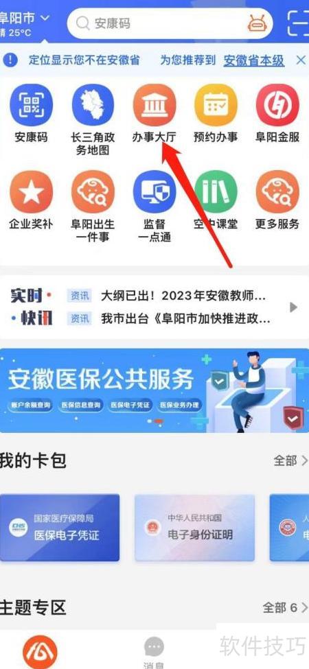 1、 打开皖事通App,点击办事大厅进入即可。