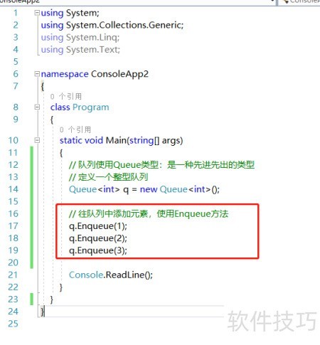2、 通过Enqueue方法将元素添加到队列中。