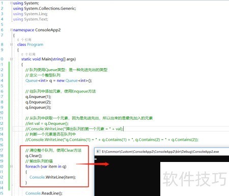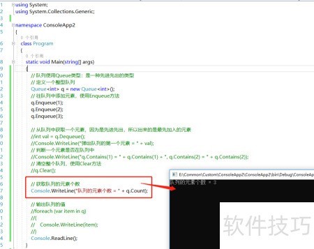 9、 通过Count属性可获取队列中元素的数量。