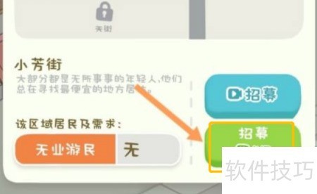 建造双人公寓后,点击招募并支付相应费用即可入住住户。