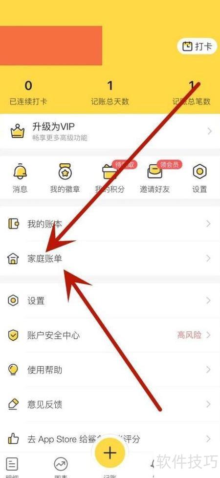 1、 进入鲨鱼记账,选择家庭账单功能。