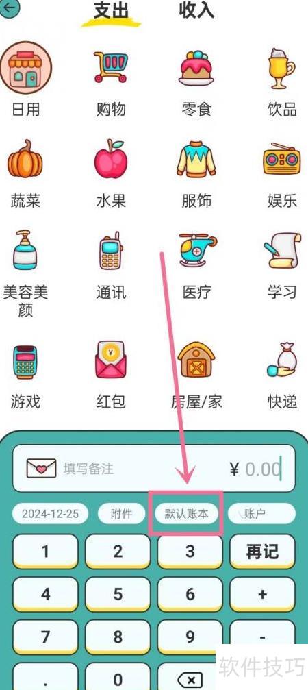 2、 进入记账界面后,点击默认账本即可。