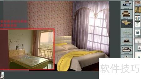 5、 室内家具可自由更换,如替换床具后,需调整图片选区范围,具体效果见示意图。