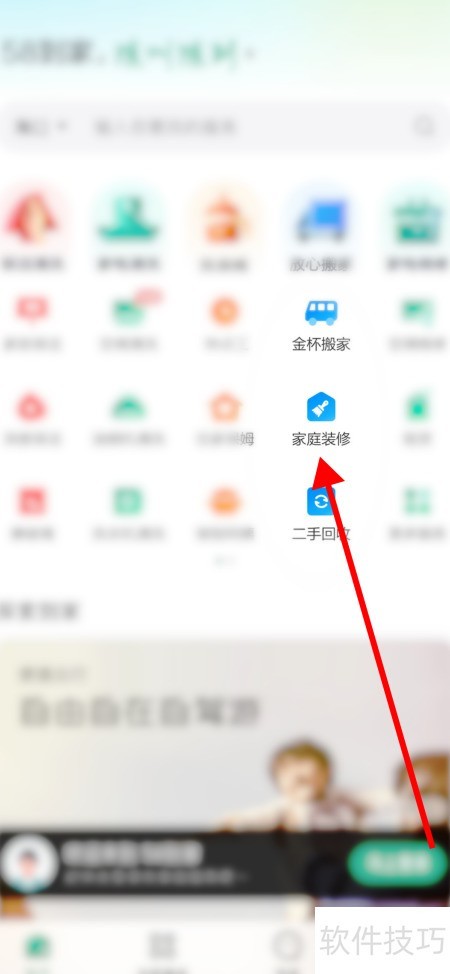 1、 打开58到家应用,选择底部的家庭装修选项。