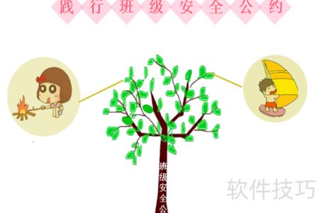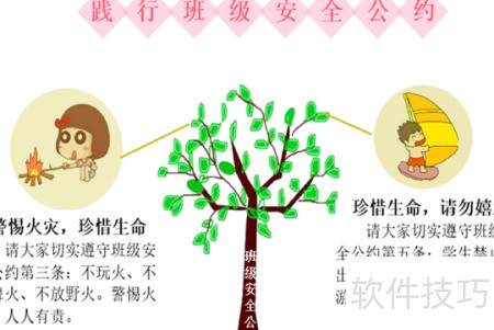2、 绘制班级安全公约树,标示出学生禁止行为,增强安全意识。