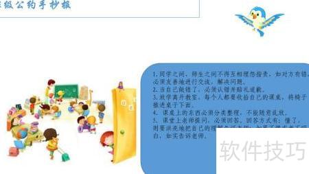 2、 在绘制的文本框中书写班级公约手抄报以突出主题。