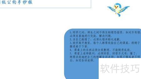 3、 在右上角绘制小鸟图案作为装饰,点缀班级公约手抄报,增添生动气息。