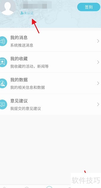 3、 登录后进入我的页面,点击顶部未认证提示,选择合适方式完成账号认证。
