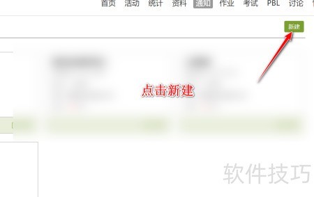 3、 进入通知栏,点击右上角新建,编辑内容后发布即可完成。