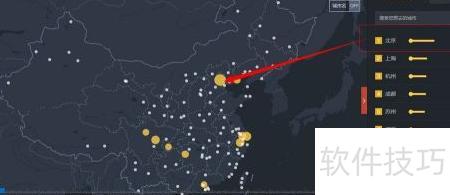 3、 返回百度预测首页后,点击第二个功能城市预测,进入相应页面。右侧显示按百度搜索热度排序的旅游目的地,左侧地图则通过点状图标呈现各城市的热门程度。