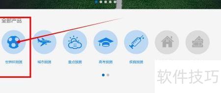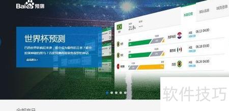 2、 向下翻页后,会出现百度预测所有产品的入口按钮。点击首个世界杯预测选项,即可进入相关页面。该页面展示了各参赛球队的胜率预测情况,若比赛已结束,还将显示预测结果的准确率信息。