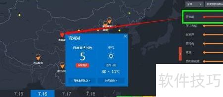 4、 进入百度预测首页,选择景点预测功能。页面右侧列出按热度排序的热门景点,左侧地图则直观展示各景点的相关数据信息,方便用户快速了解当前热门旅游目的地的情况。