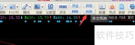 3、 此时点击软件菜单中的预测功能,系统将依据历史股价走势,分析并预判当前股票未来的走向。