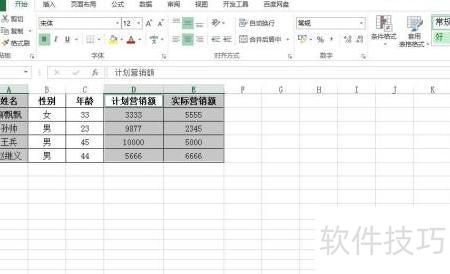 3、 按住Ctrl键,依次选中要用于柱状对比图的数据区域。