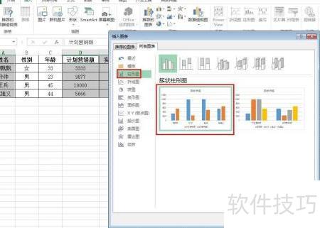 6、 进入所有图表选项卡,挑选所需柱形图类型,点击确定完成设置。