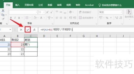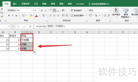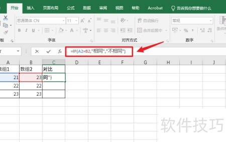 4、 当A2等于B2时显示相同,否则显示不相同。