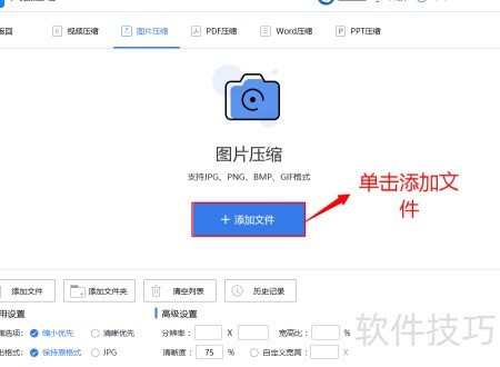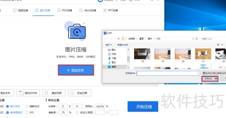 3、 点击添加文件,选取需压缩的图片后确认打开。