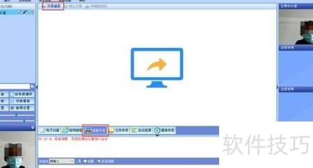 5、 点击菜单栏下方的,再选择上方的按钮,即可将本地电脑屏幕内容,如PPT等文件资料,实时分享给所有参会人员查看。
