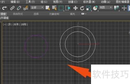 5、 在顶视图中,将圆环置于圆形上方,位置所示。