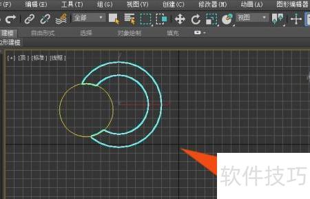 9、 从顶视图可清晰观察到图形合并后的效果,所示。通过上述操作步骤,即可掌握在3dmax2020中运用图形合并工具的具体方法。