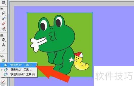 4、 用鼠标左键点击工具箱里的热点工具,然后选择矩形选项,所示。