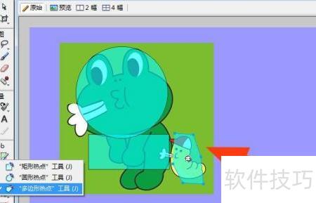 8、 用鼠标左键点击多边形热点工具,在图像上进行绘制,所示。完成此操作后,图像上的热点区域即已成功创建,从而掌握了在Fireworks软件中使用图形热点工具的方法。