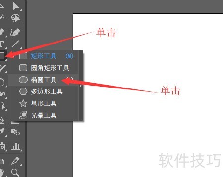 1、 新建空白文档后,用鼠标点击工具栏中的椭圆工具。